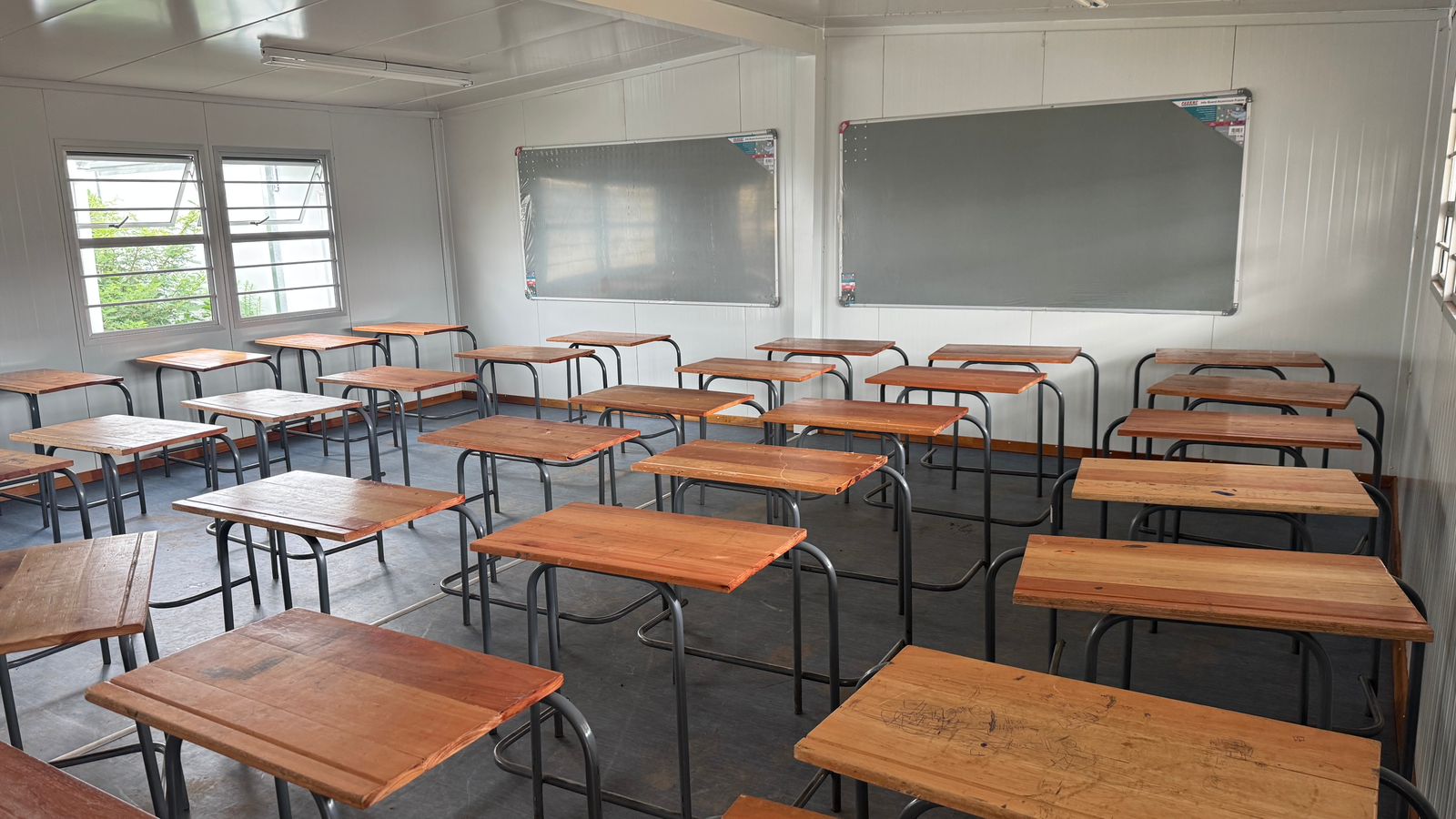 Last year, the school was forced to operate out of a neighbouring school hall, with four classrooms running simultaneously in one space. The mobile school that was later established was delivered without any furniture, forcing learners to sit on the floor for more than a week.